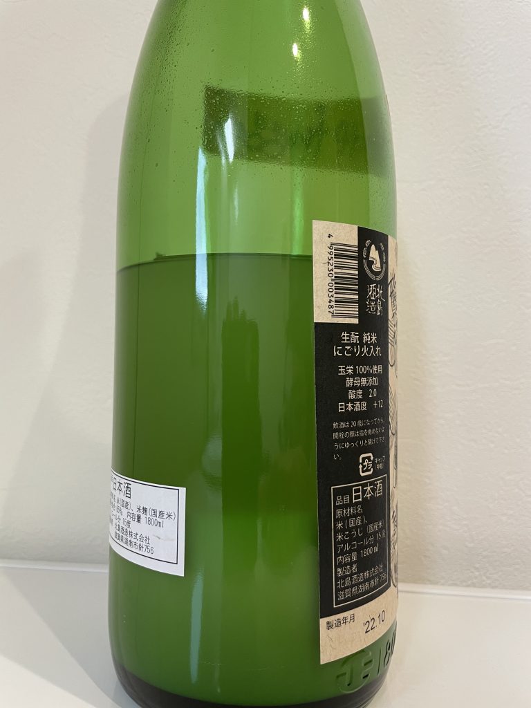 - ラベル情報:生酛 純米 にごり火入れ 玉栄100%使用 酵母無添加 酸度 2.0