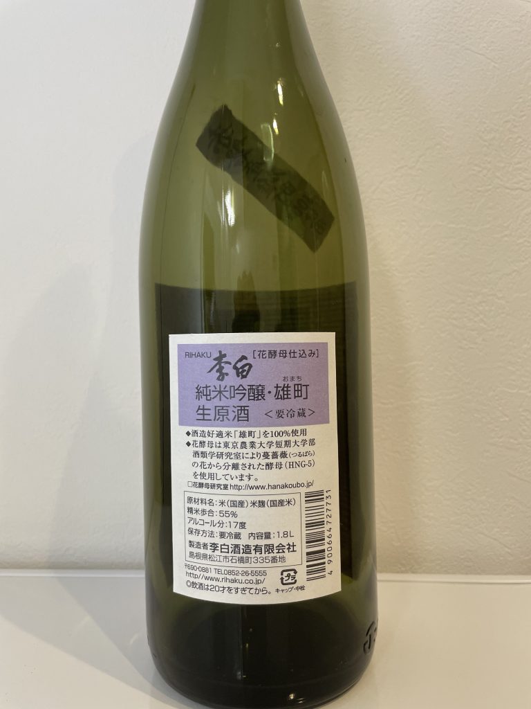 - ラベル情報:酒造好適米「雄町」を100%使用