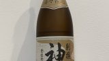 - 感想:常温ストレート。瓶が白金新聞という自社広告で包まれており目をひいた。11月のみの限定品。蒸留の終わりの「末垂れ」は芋の香りが強いが雑味も多いが、製法を工夫することで長所のみを引き出したとのこと。表面に「末垂れ」に由来する油滴が浮き、僅かに白く濁っている。濃厚な芋の味のためか、アルコールの刺激は感じない。糖度が一般的な日本酒と同程度の12.4%もあり驚いた。