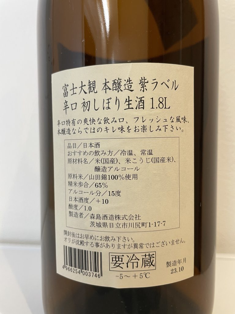 辛口特有の爽快な飲み口、フレッシュな風味、本醸造ならではのキレ味をお楽しみ下さい。 - 感想:富士大観の紫色のラベルは初めて見た。リーズナブルな価格設定。炭酸はないが、醸造アルコールを加えた辛口だが、アルコールの刺激はなくまろやか。どことなく柑橘系の後味がある。